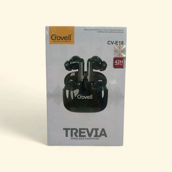 Introducing the Crovell CV-E18 Earbuds, your ultimate companion for uninterrupted music and calls. Designed to keep up with your on-the-go lifestyle, these earbuds deliver exceptional sound quality and remarkable battery life, ensuring you're always connected and entertained.